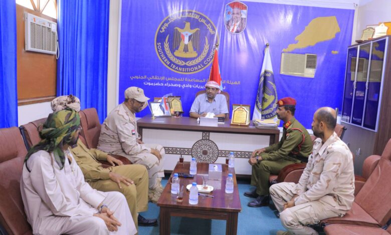 رئيس تنفيذية انتقالي وادي وصحراء حضرموت يلتقي قائد كتيبة النخبة مشاة المستقلة بمعسكر العند
