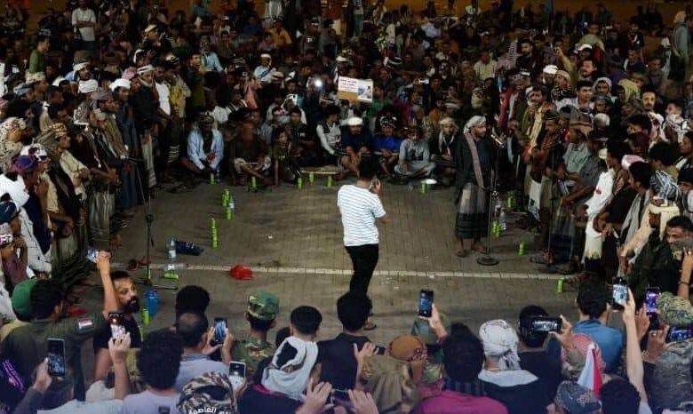 ساحة الاعتصام المفتوح بالعاصمة عدن تحيي أمسية ثقافية من التراث الشبواني