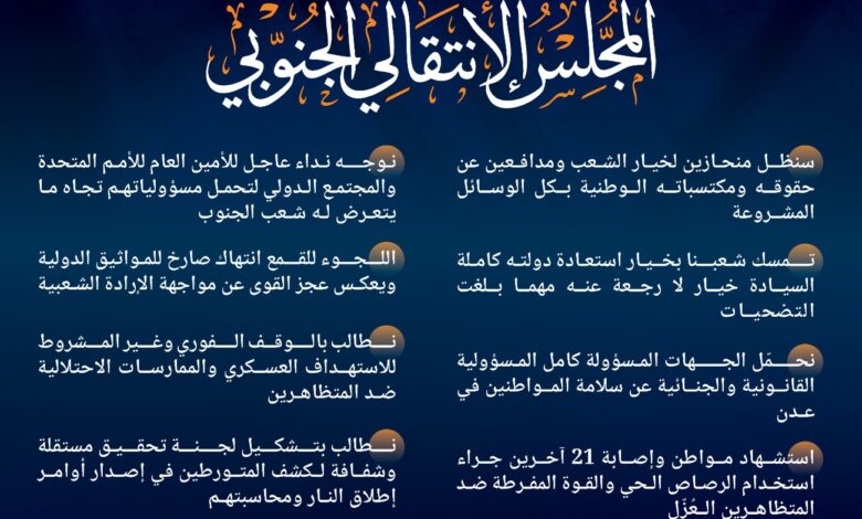 بيان صادر عن الهيئات التنفيذية لمنسقيات المجلس الانتقالي في جامعات الجنوب