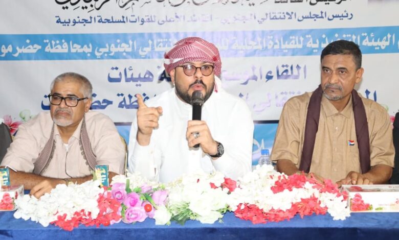 انتقالي حضرموت يعقد اجتماعاً موسعاً لهيئات المجلس بالمحافظة.. ويؤكدون على أن محاولة تمزيق النسيج الجنوبي وتفريخ المكونات لن تنجح