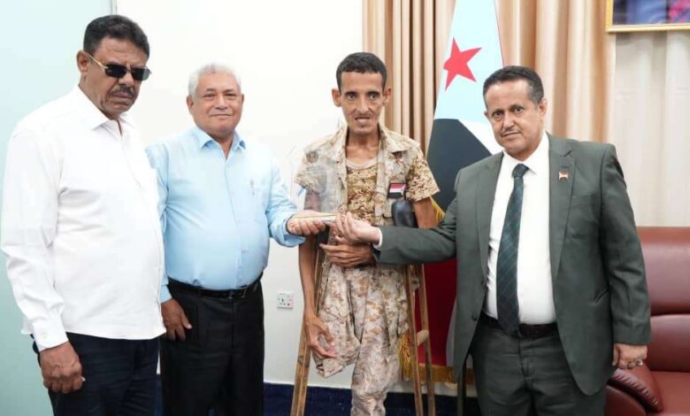 بتوجيهات الرئيس الزُبيدي… الحالمي يكرّم البطل الجريح علوي عبدالله بدرع الصمود
