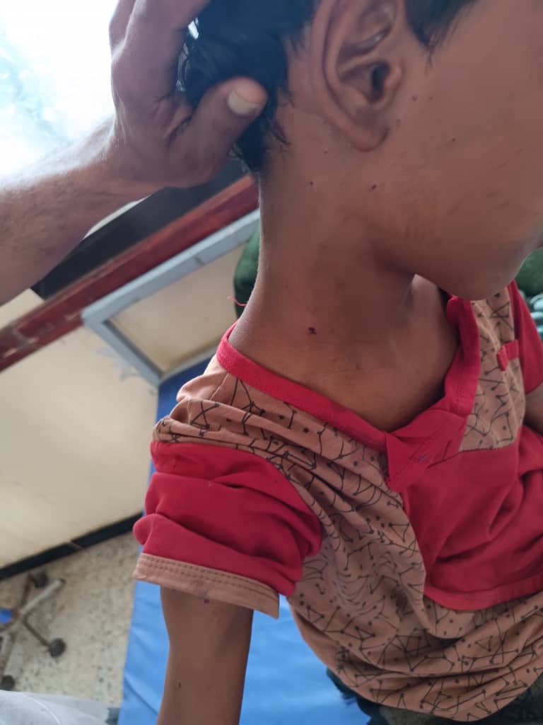 وذكرت مصادر محلية أن الطفل عواد محمد صالح القوزعي، البالغ من العمر 14 عامًا، أُصيب بشظايا متفرقة في جسده أثناء قيامه برعي الأغنام، نتيجة إطلاق نار مباشر من عناصر المليشيا الحوثية، ليتم إسعافه على الفور إلى العيادة الميدانية التابعة للواء الثاني حزم لتلقي العلاج اللازم.