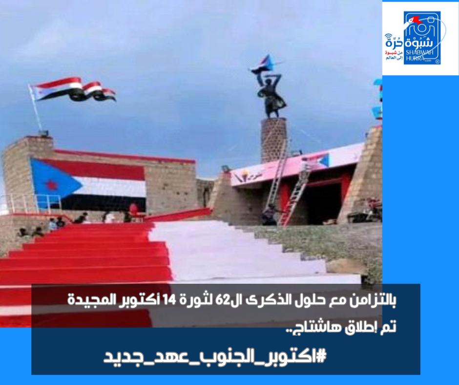 وعصر اليوم الأحد 12 أكتوبر / تشرين الأول 2025م، اطلق ناشطون وسياسيون جنوبيون، هاشتاج #اكتوبر_الجنوب_عهد_جديد على مواقع التواصل الاجتماعي، اشهرها منصة X))، (تويتر) سابقًا، بالتزامن مع حلول الذكرى الـ (62) لثورة الرابع عشر من أكتوبر المجيدة، والتي انطلقت شرارتها من جبال ردفان الشماء، وتوّجت بطرد آخر جندي بريطاني من أرض الجنوب.