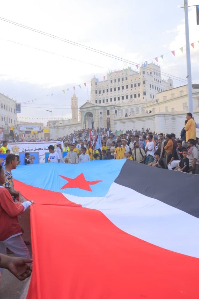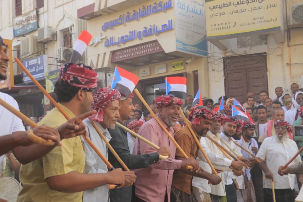 وشارك في إحياء ريحة ختام الحولية جمع غفير من محبي لعبة الشبواني، وردد المشاركون خلالها شعارات وأهازيج تؤكد تمسك أبناء حضرموت بهويتهم الجنوبية، كما رفعت أعلام دولة الجنوب وصور الرئيس القائد عيدروس الزُبيدي، رئيس المجلس الانتقالي الجنوبي.