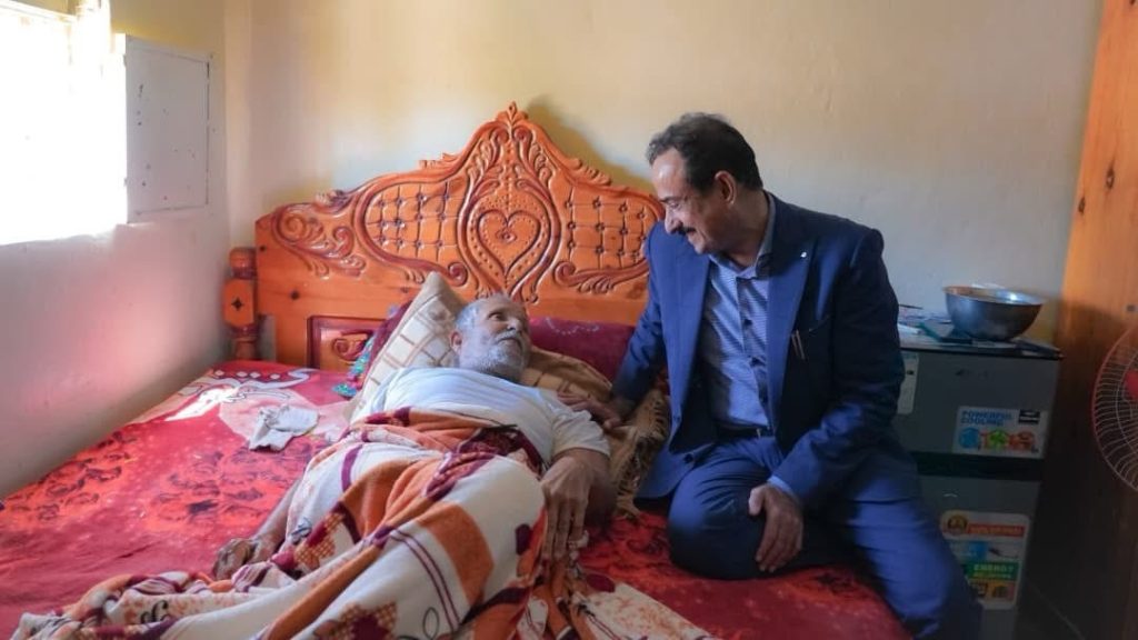 في إطار اهتمام قيادة السلطة المحلية برموز الثقافة والإبداع، قام محافظ محافظة شبوة، رئيس المجلس المحلي، عوض محمد بن الوزير، صباح اليوم الخميس، بزيارة إنسانية إلى منزل الشاعر الشعبي الكبير صالح بن خميس الحداد في مديرية نصاب، وذلك للاطمئنان على صحته إثر وعكة صحية ألمّت به وألزمته الفراش، بعد مسيرة شعرية طويلة حافلة بالعطاء والوفاء والانتماء لهوية الأرض والإنسان.