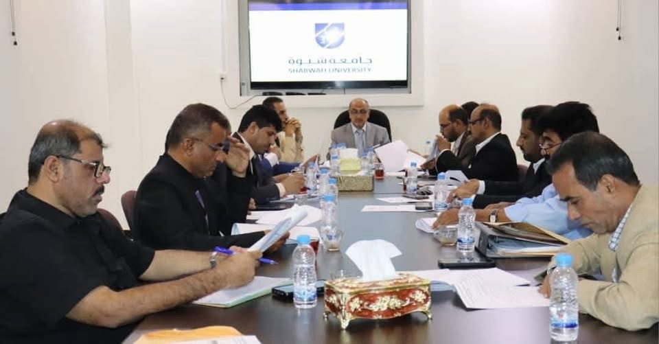 عقد مجلس جامعة شبوة، صباح اليوم، اجتماعه الدوري برئاسة رئيس الجامعة الأستاذ الدكتور توفيق سريع باسردة، لمناقشة جملة من القضايا الأكاديمية والتنظيمية المدرجة على جدول أعماله.