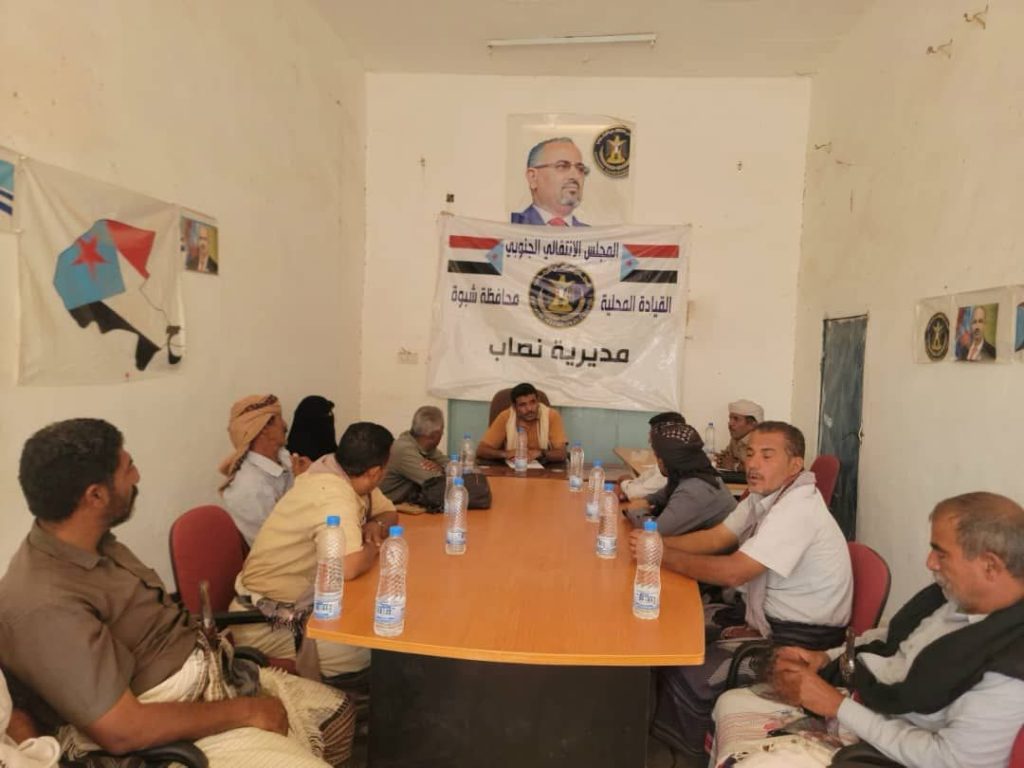 عقدت الهيئة التنفيذية للقيادة المحلية للمجلس الانتقالي الجنوبي، في مديرية نصاب، بمحافظة شبوة، اليوم الخميس، اجتماعها الدوري لشهر أكتوبر، برئاسة عبدالله عوض عريق، رئيس الهيئة.