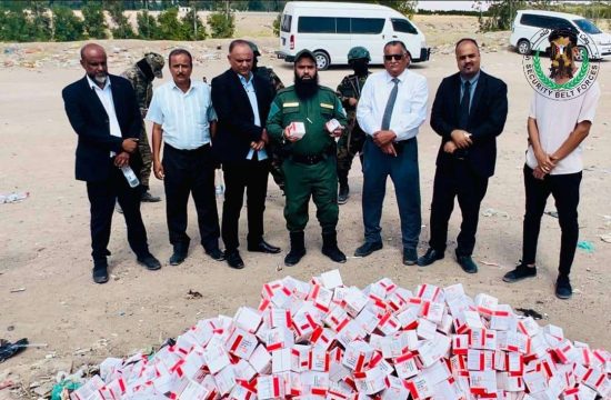 أتلفت قوات الحزام الأمني، اليوم، في العاصمة عدن، كمية كبيرة من حبوب البريجبالين المخدرة المضبوطة من قبل قوات الحزام، والتي بلغت أكثر من (18000) ألف شريط، وما يعادل (271000) حبة بريجبالين، ذو قوة (300)، وذلك بإشراف مباشر من النائب العام، القاضي قاهر مصطفى، والقائد العام لقوات الحزام الأمني، والعميد محسن بن عبد الله الوالي.