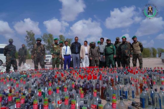 أتلفت الإدارة العامة لمكافحة المخدرات بقوات الحزام الأمني، صباح اليوم، كمية كبيرة من الخمور المستوردة بلغت (1762) قارورة وعلبة، تم ضبطها في وقت سابق من قبل قوات حزام طوق العاصمة عدن في منطقة رأس عمران، على أحد خطوط التهريب الصحراوية.