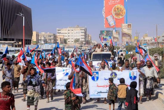 نظمت القيادة المحلية للمجلس الانتقالي الجنوبي في مديرية عتق بمحافظة شبوة، اليوم الخميس، مسيرة جماهيرية حاشدة، احتفالاً بالانتصارات التي حققتها القوات المسلحة الجنوبية في عارين بشبوه، ومديرية سيئون بمحافظة حضرموت.