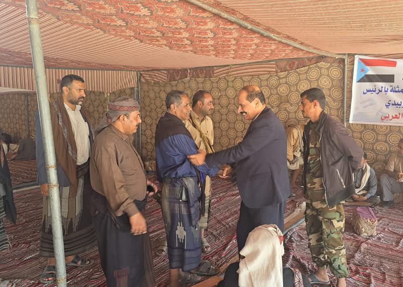 ودشن مخيم الاعتصام بحضور رئيس الهيئة التنفيذية للقيادة المحلية للمجلس الانتقالي الجنوبي بالمحافظة الشيخ لحمر علي لسود، ووكلا المحافظة فهد الذيب الخليفي، وأحمد صالح الدغاري، وعيدروس باعوضة، وعدداً من مدراء عموم السلطة المحلية، والهيئة التنفيذية للمجلس الانتقالي، وجماهير غفيرة من أبناء شبوة.