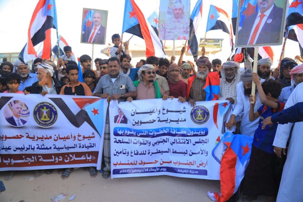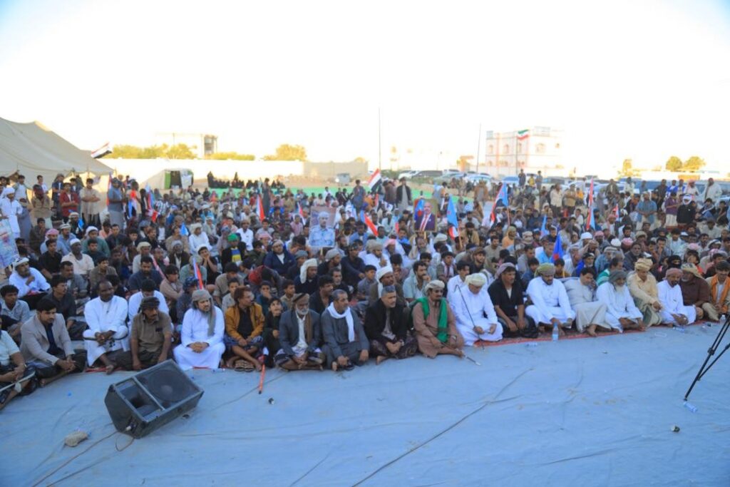 توافد جماهيري من حصوين وقبيلة العوبثاني إلى ساحة الاعتصام بالغيضة للمطالبة بإعلان دولة الجنوب