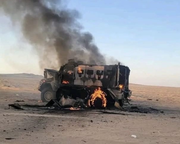 وأفادت مصادر ميدانية أن الرتل العسكري كان يضم آليات عسكرية واسلحة ثقيلة ومتوسطة واجهزة جرى نهبها خلال اليومين الماضيين من قبل مليشيات الاخوان ، قبل أن يتم رصد تحركاته واستهدافه بدقة، ما أدى إلى تدمير عدد من العربات بشكل كامل.
