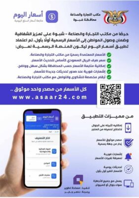 شبوة..مكتب الصناعة والتجارة يدعو للإبلاغ عن أي مخالفات سعرية ويشدد على استمرار الرقابة الميدانية.