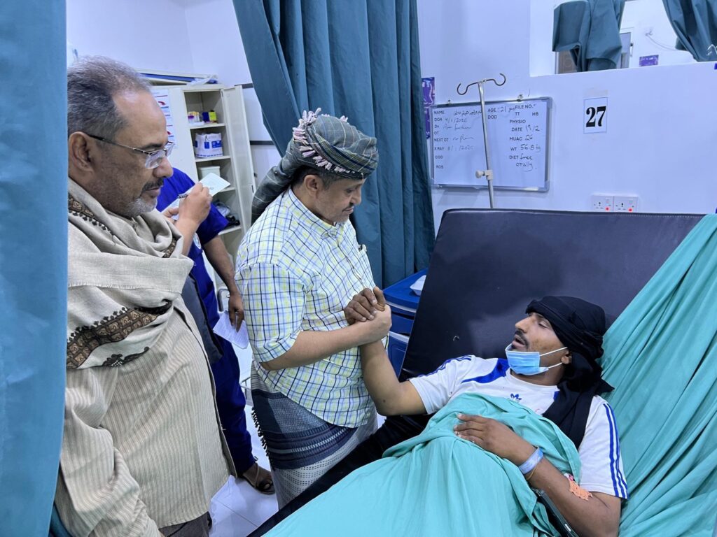 واطمأنّ الحالمي خلال زياراته على أحوال الجرحى، وأوضاعهم الصحية، ناقلا لهم تحيات الرئيس القائد عيدروس الزُبيدي، مستمعًا إلى شرح حول الحالة الصحية للمصابين وطبيعة إصاباتهم، مطمئنًا على مستوى الرعاية المقدمة لهم.