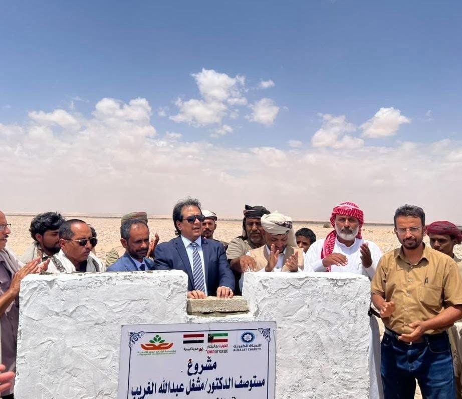 شبوة: برعاية المحافظ بن الوزير.. وضع حجر الأساس لمستوصف الدكتور مشعل الغريب بمنطقة مطار عرماء