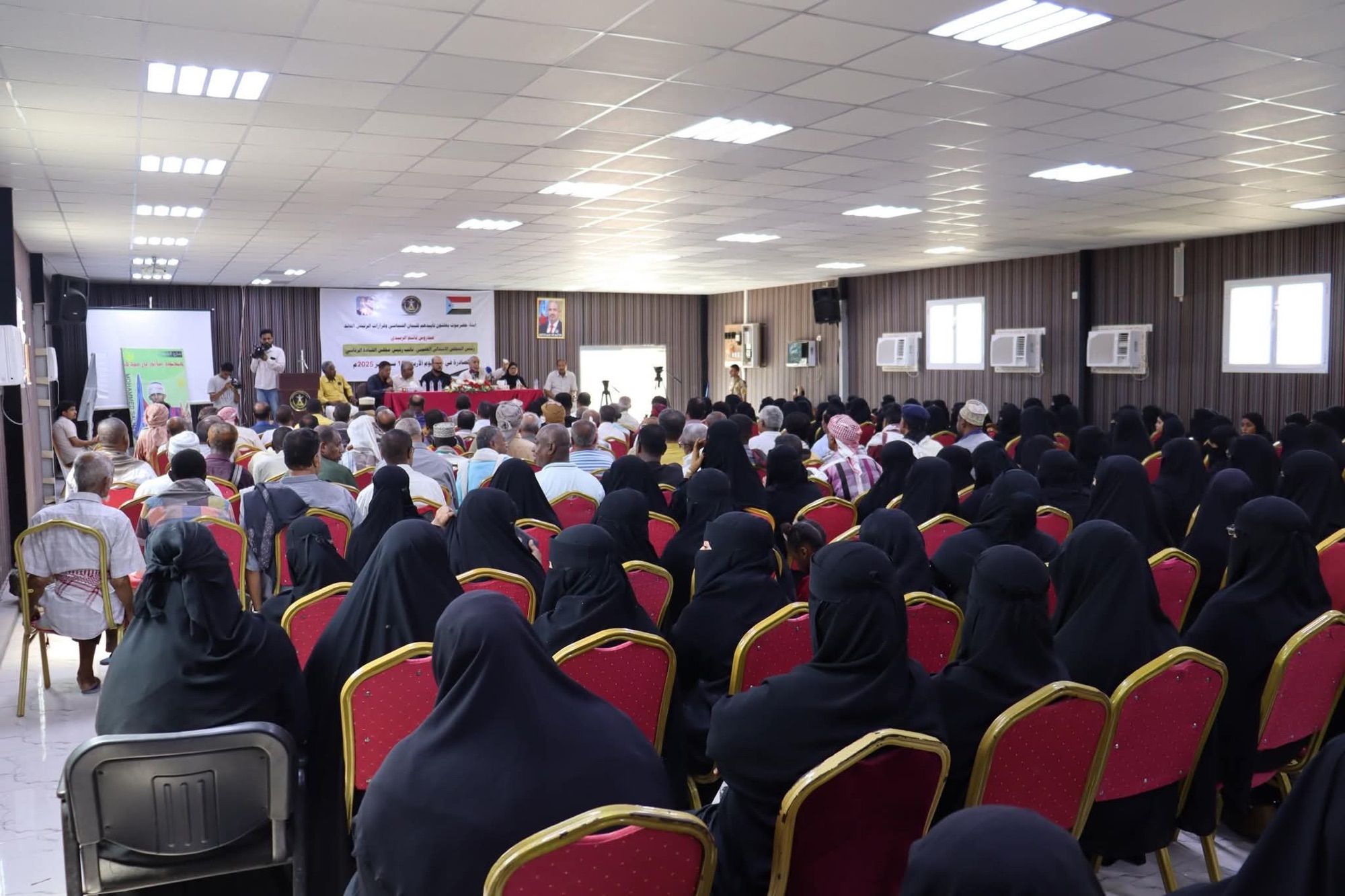 فريق التوجيه والرقابة الرئاسي يعقد لقاءً حاشدًا بالقيادة المحلية ومراكز الانتقالي واللجان المجتمعية بالمكلا