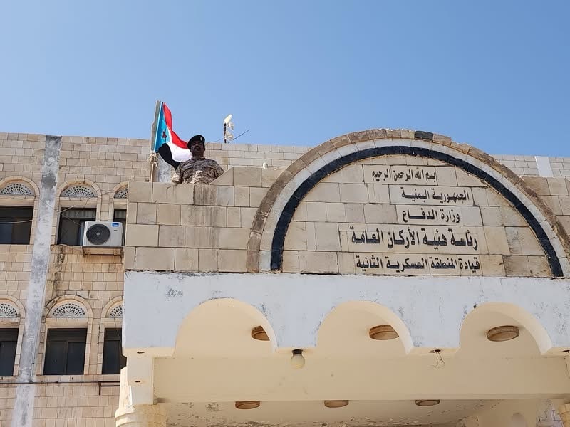 أعلام الجنوب العربي ترفرف أعلى قيادة ووحدات المنطقة العسكرية الثانية