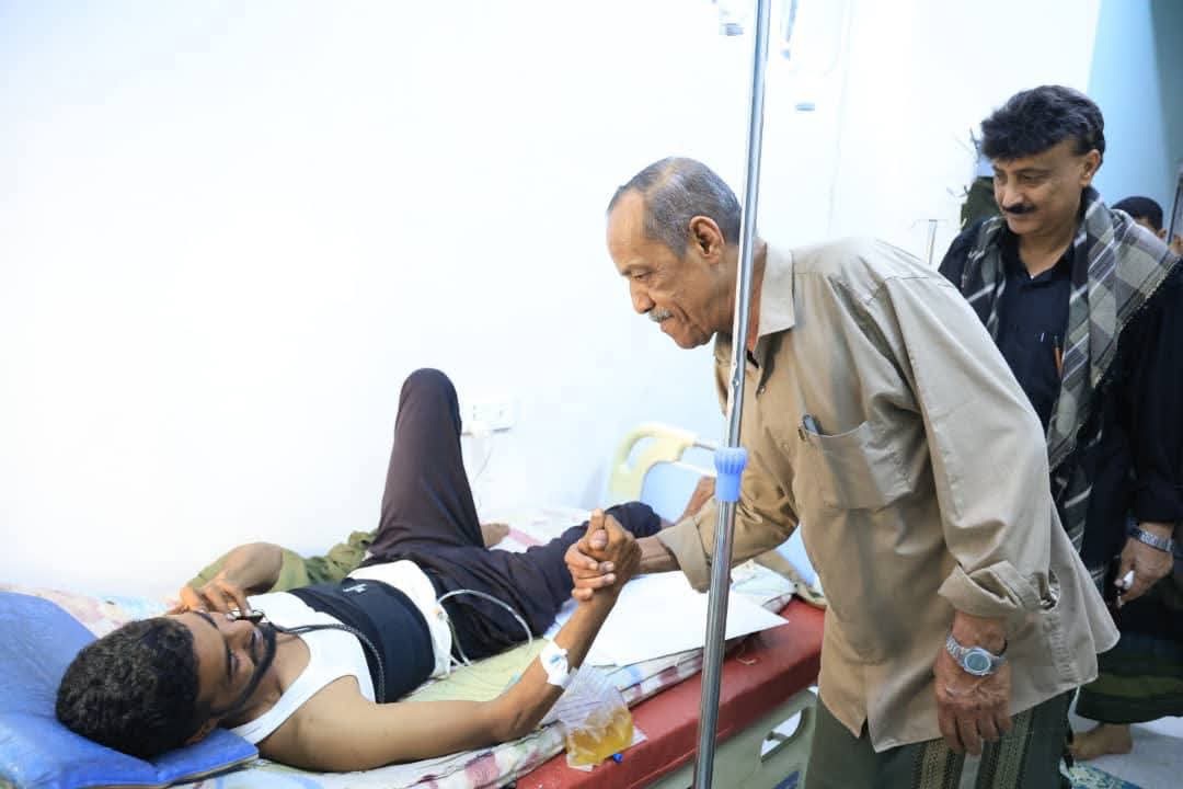 اللواء بارجاش واللواء باعش والعميد المنهالي في زيارة لجرحى قواتنا المسلحة الجنوبية بالمكلا.