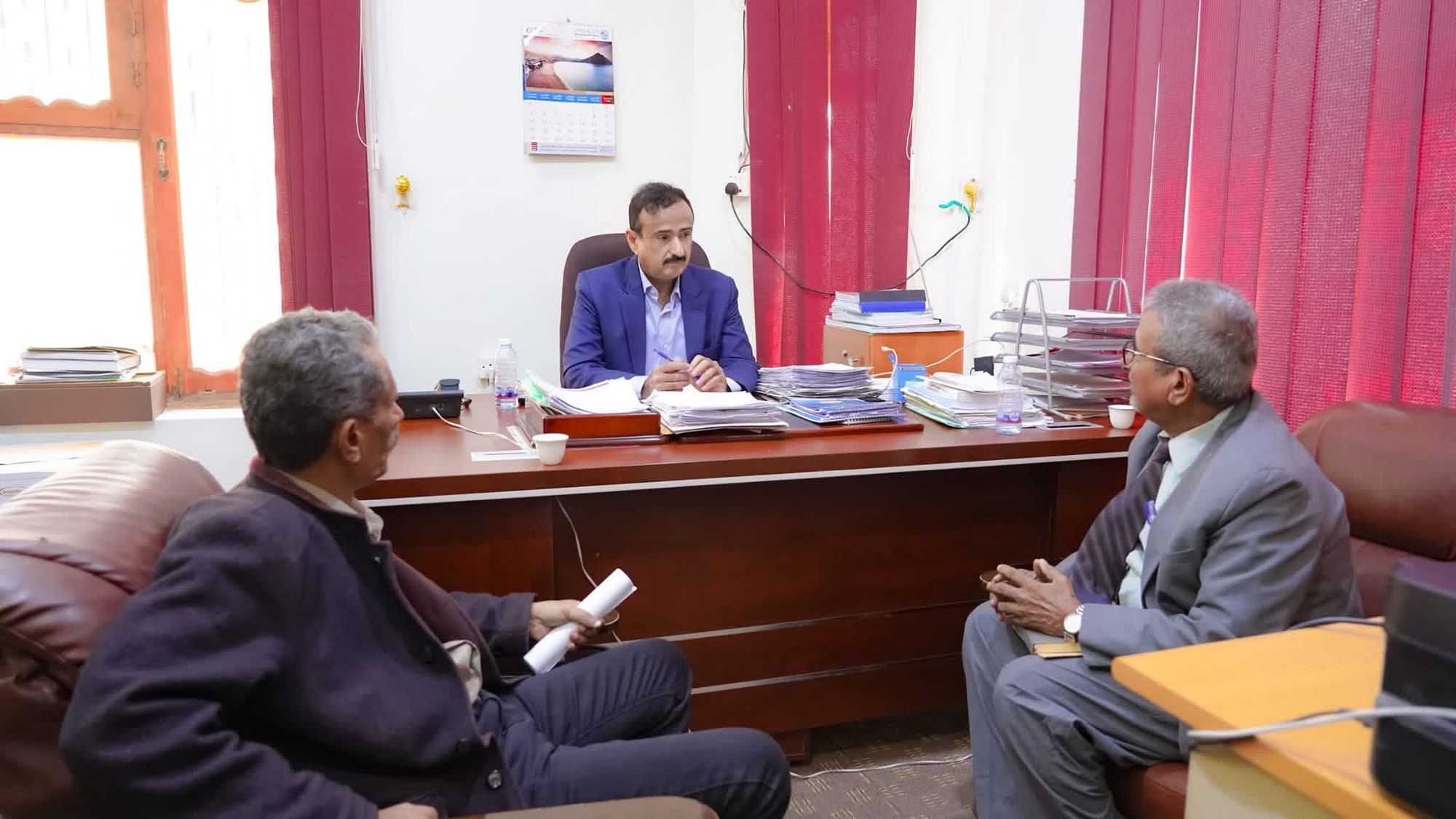 المحافظ بن الوزير يستعرض مع إدارة جمعية رعاية المعاقين التصاميم والدراسات الفنية لمبنى الجمعية في شبوة