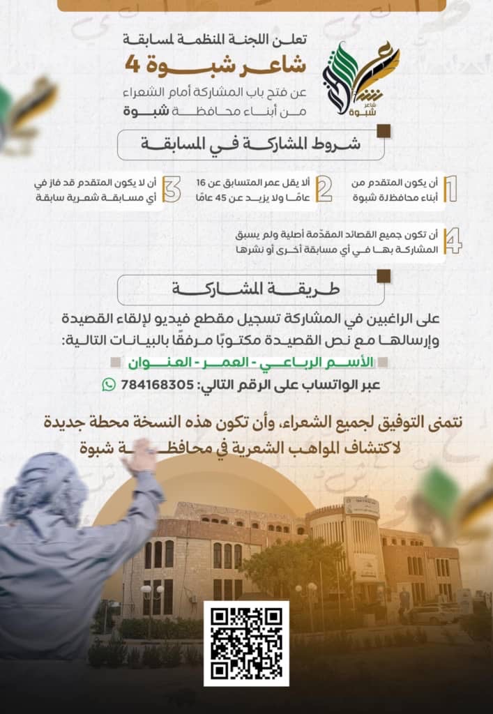 إعلان هام من اللجنة المنظمة لمسابقة شاعر شبوة – النسخة الرابعة