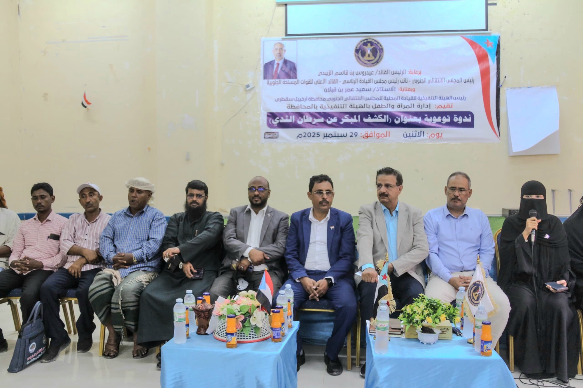 بحضور فريق التوجيه والرقابة الرئاسي…انتقالي سقطرى ينظم ندوة توعوية عن الكشف المبكر لسرطان الثدي