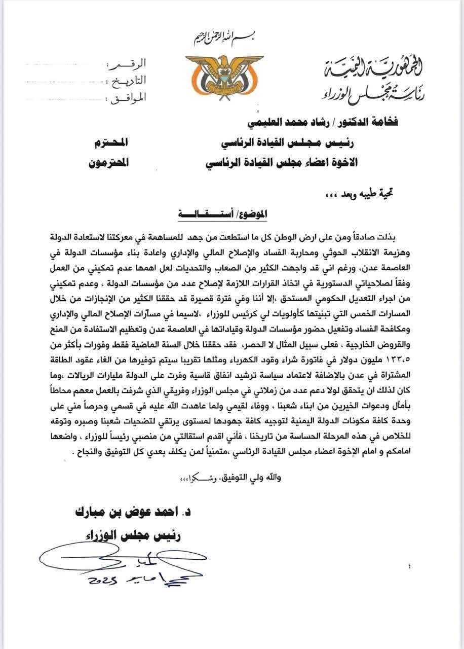 رئيس الحكومة بن مبارك يعلن تقديم استقالته” وثيقة
