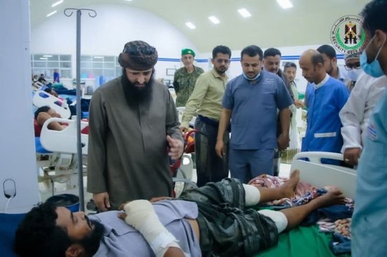 الوالي يتفقد جرحى قوات الحزام الأمني في مستشفى عبود العسكري