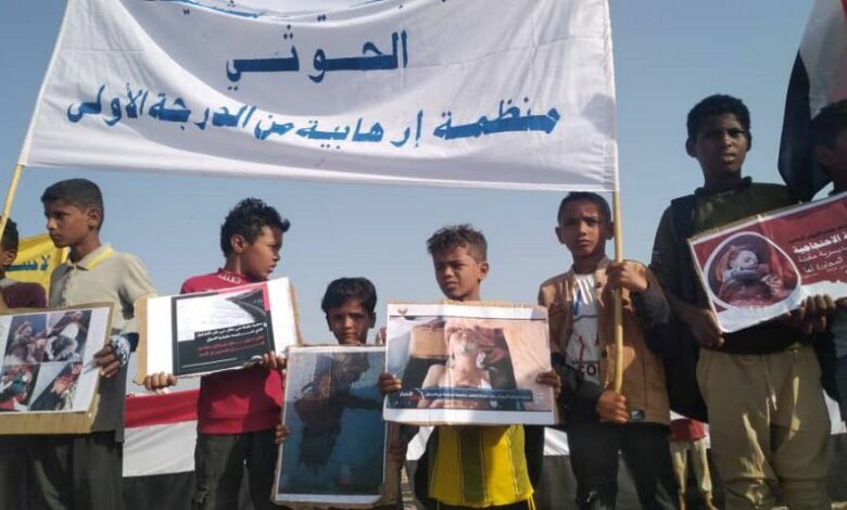وقفة احتجاجية في حيس تندد بجرائم المليشيات الحوثية ضد المدنيين