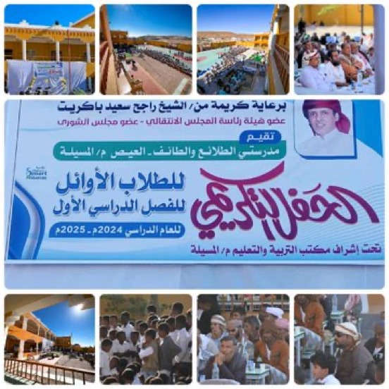 مدرستي الطلائع والطائف بمديرية المسيلة، تحتفل بتكريم 48 طالبا متنافسين على المراكز الثلاثة الأولى