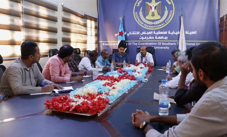 منسقية الانتقالي بجامعة حضرموت تعقد لقاءً تشاورياً لرؤساء تنفيذيات الكليات