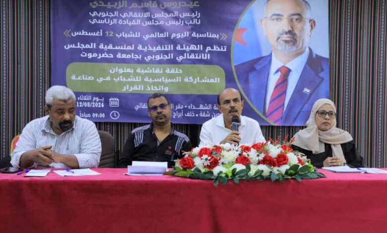 نظمتها منسقية الانتقالي بحضرموت.. حلقة نقاشية حول مشاركة الشباب في صناعة القرار بالجنوب