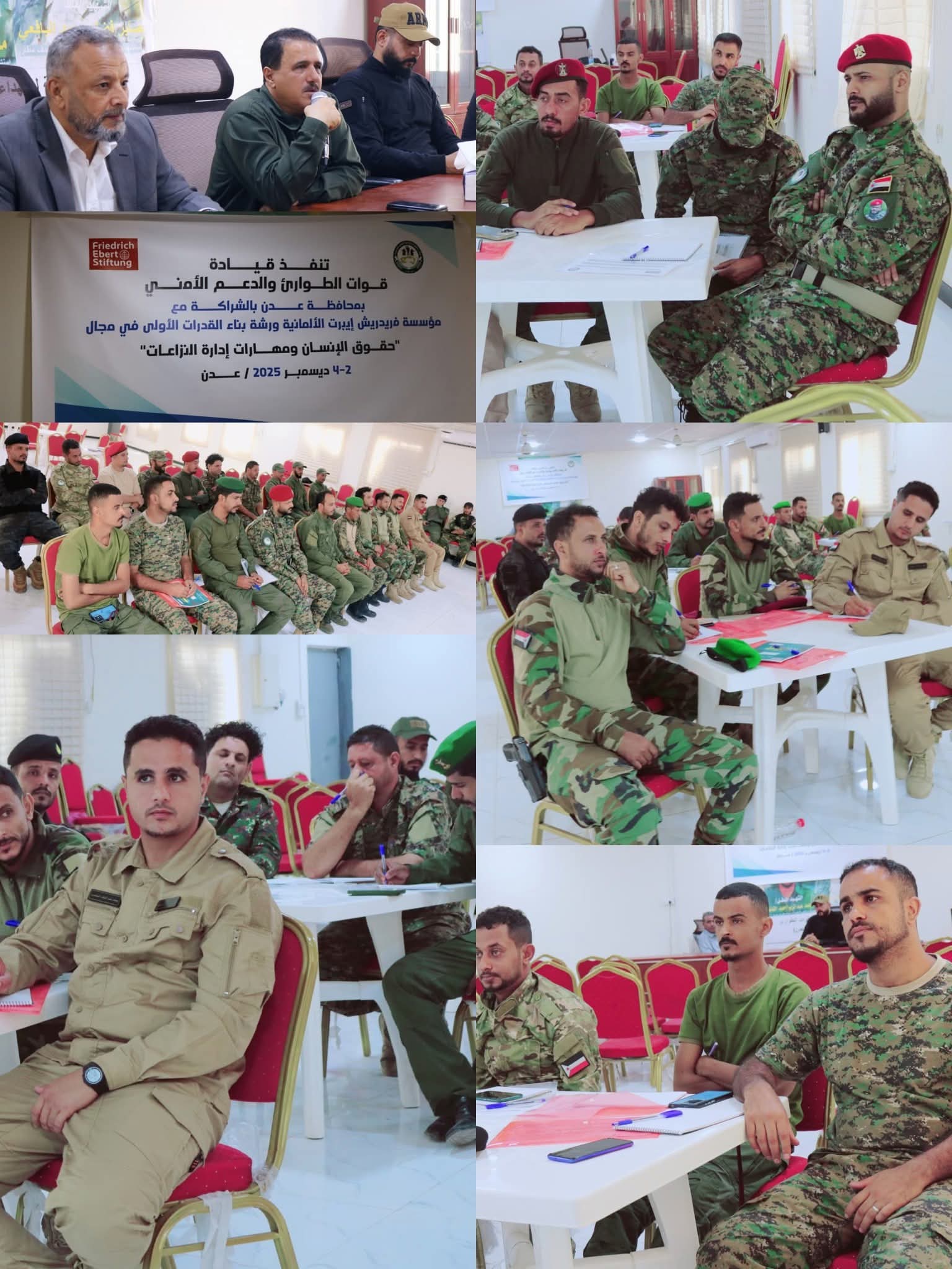تدشين دورة تدريبية حول حقوق الإنسان وإدارة النزاعات المسلحة لقوات الطوارئ والدعم الأمني بالعاصمة عدن