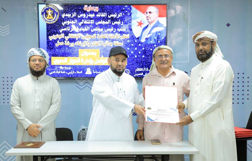 الأمانة العامة لهيئة رئاسة المجلس الانتقالي تختتم ورشة تدريبية في مهارات التواصل وإدارة الحوار الدعوي