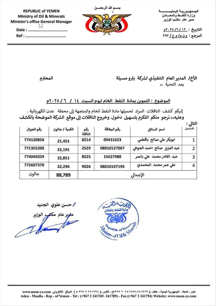 توجيهات بإمداد كهرباء عدن بـ12 مقطورة نفط يوميًا
