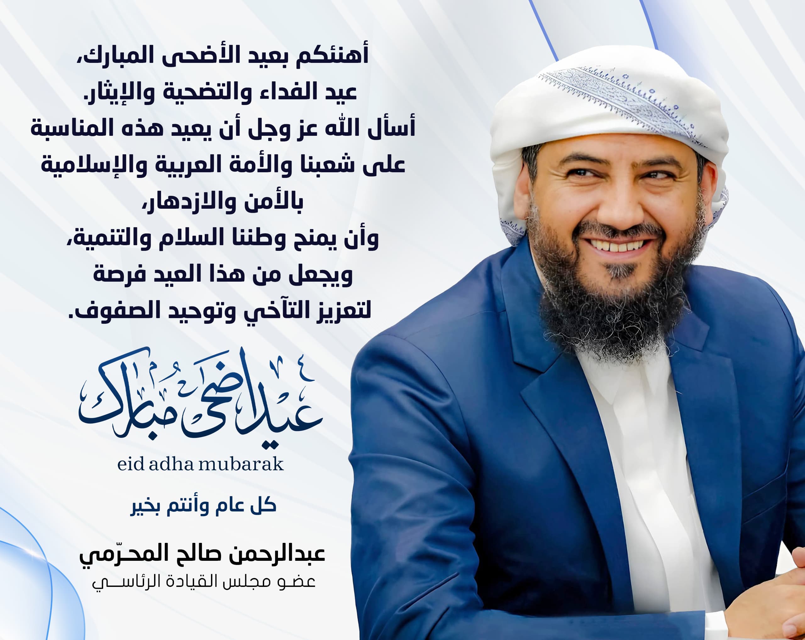المحرّمي يهنئ الشعب بعيد الأضحى ويدعو لتعزيز التآخي والسلام