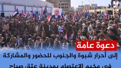 توافد جماهيري من مديرية قشن إلى ساحة الاعتصام بالغيضة دعمًا لمطلب إعلان دولة الجنوب العربي