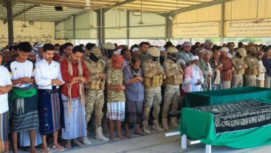في موكب جنائزي مهيب.. باتيس يشارك في تشييع جثمان الشهيد البطل عمر العمودي بالمكلا
