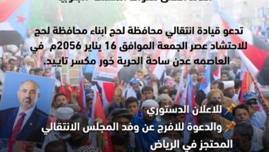 #عاجل | انتقالي شبوة يدعو جماهير المحافظة للاحتشاد عصر الجمعة في العاصمة عدن تلبية لدعوة الرئيس الزُبيدي