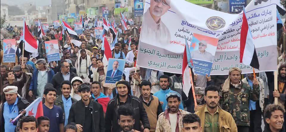توافد جماهيري من حصوين وقبيلة العوبثاني إلى ساحة الاعتصام بالغيضة للمطالبة بإعلان دولة الجنوب