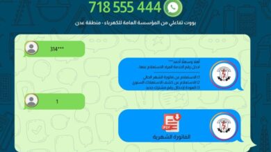 كهرباء عدن تطلق خدمة واتساب لمعرفة قيمة الفاتورة الشهرية في حال فقدانها