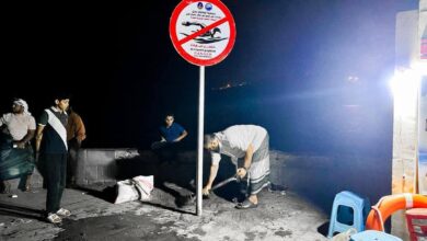 تركيب لوحة تحذيرية بمنع السباحة في منطقة صيرة (أبو دست)