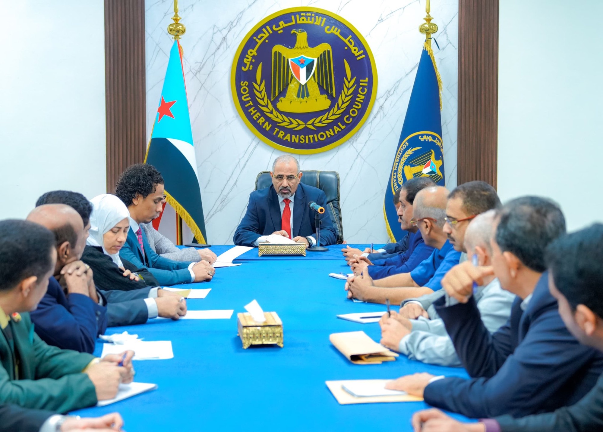 الرئيس الزُبيدي يرأس اجتماعا استثنائيا لرؤساء الهيئات التنفيذية بالمحافظات وعدد من دوائر الأمانة العامة