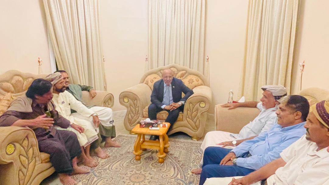 محافظ شبوة يبحث مع فريق المبعوث الأممي مستجدات الأوضاع وجهود دعم الاستقرار والسلام
