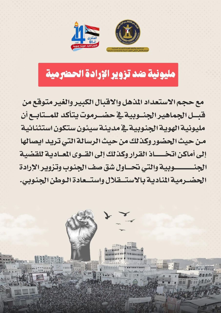 شعب الجنوب في مليونية “الوفاء والصمود” يؤكدون رفضهم المساس بالإرادة الشعبية والسيادة الوطنية الجنوبية