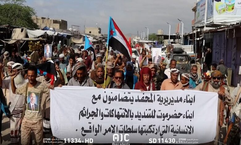 مسيرة حاشدة في المحفد تندد بأحداث المكلا وتؤكد التضامن مع حضرموت