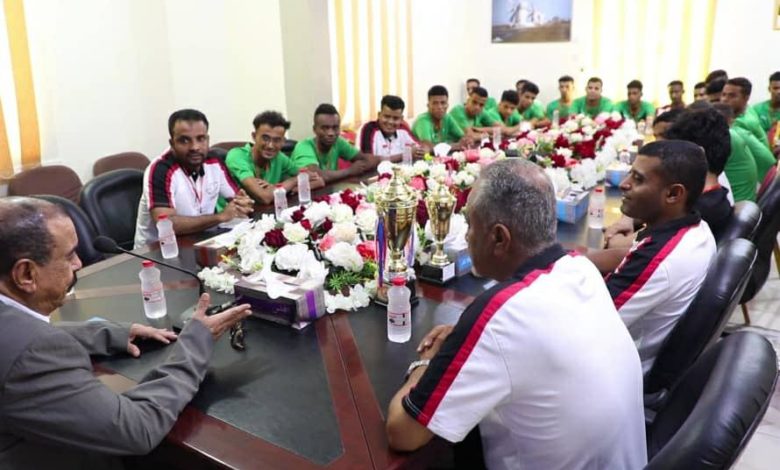 اللواء بن بريك يستقبل بعثة فريق نادي شباب القطن الرياضي لكرة اليد