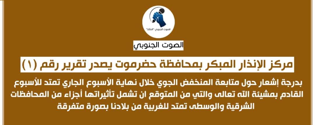 مركز الانذار المبكر بمحافظة حضرموت يصدر تقرير رقم ١