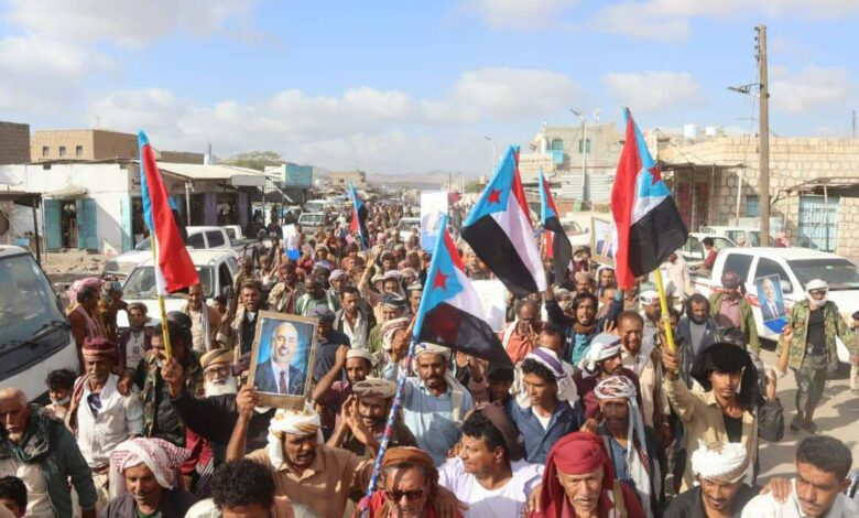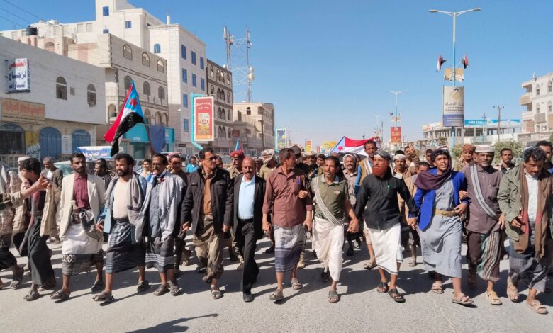 أبناء شبوة يتظاهرون في عتق تأييدا للقرار التاريخي للرئيس الزُبيدي وتنديدا بالهجمات السعودية على حضرموت