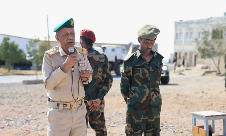 قائد المنطقة العسكرية الثانية يتفقد معسكر الكتيبة الخاصة بالمكلا ويشيد بجاهزيتها ومستواها العسكري العالي